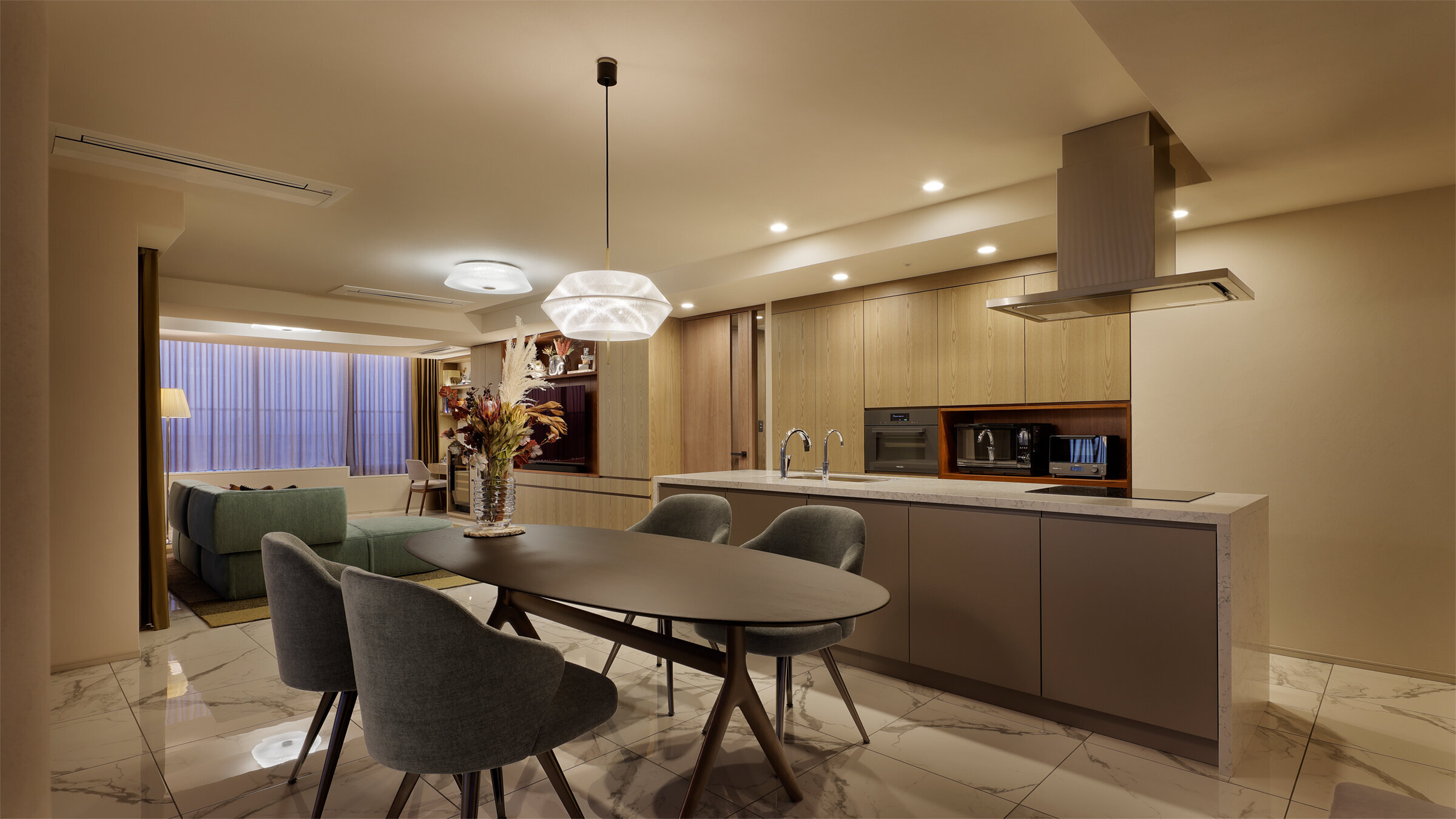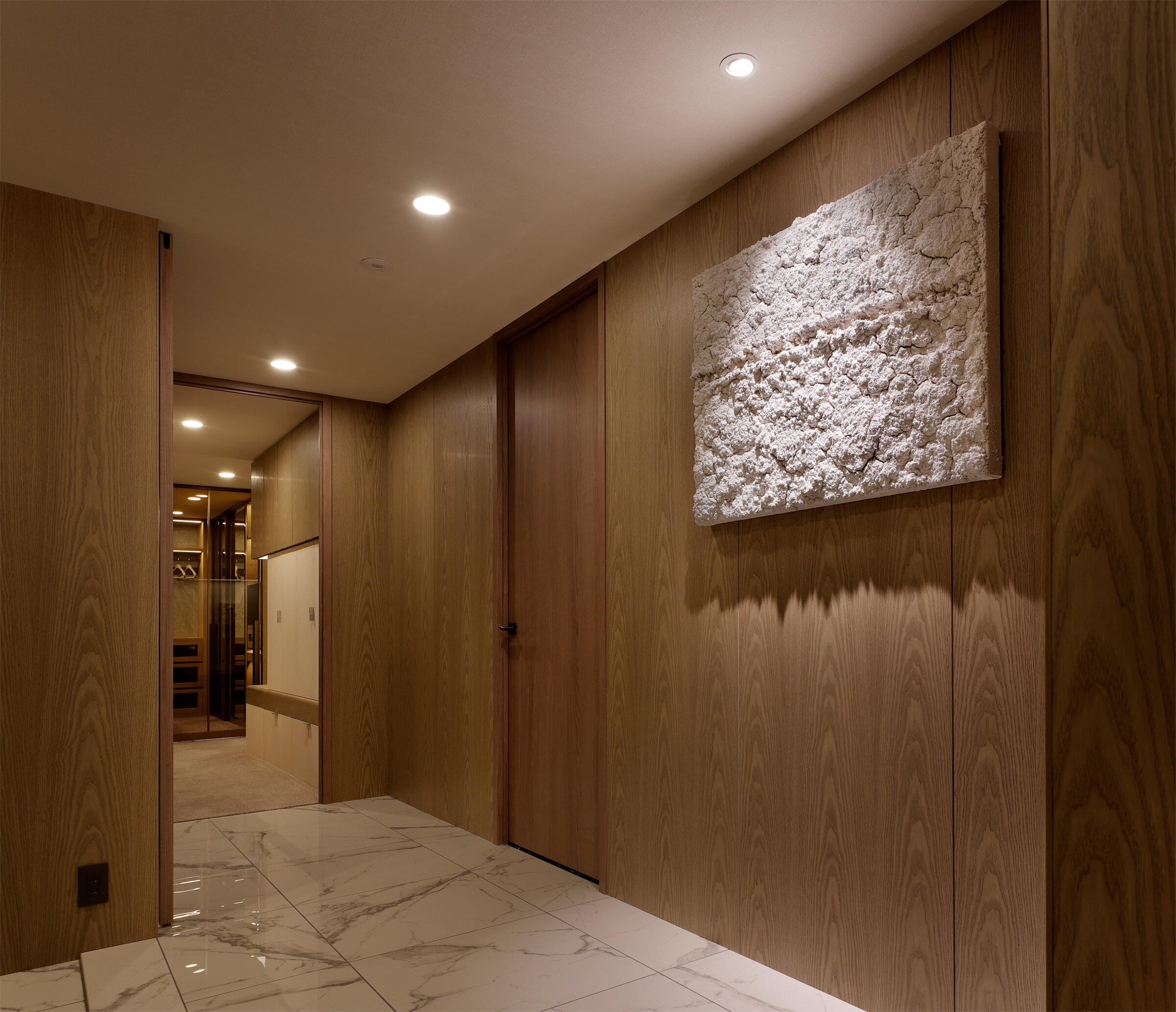 経年美化を目的とした素材の集積と最新の機能と美意識を混在させた新しいホテルライクな邸宅です。