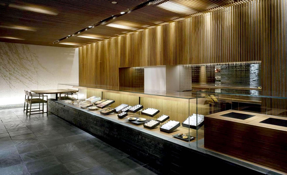そのような中、我々は新しい試みとして、漆喰、江戸唐紙、アルミの打ち出し、竹、土、石など、日本古来の素材を用いて、日本の伝統技術と現代の技術を融合し、今の人たちに受け入れられるような空間にすることを心がけた。