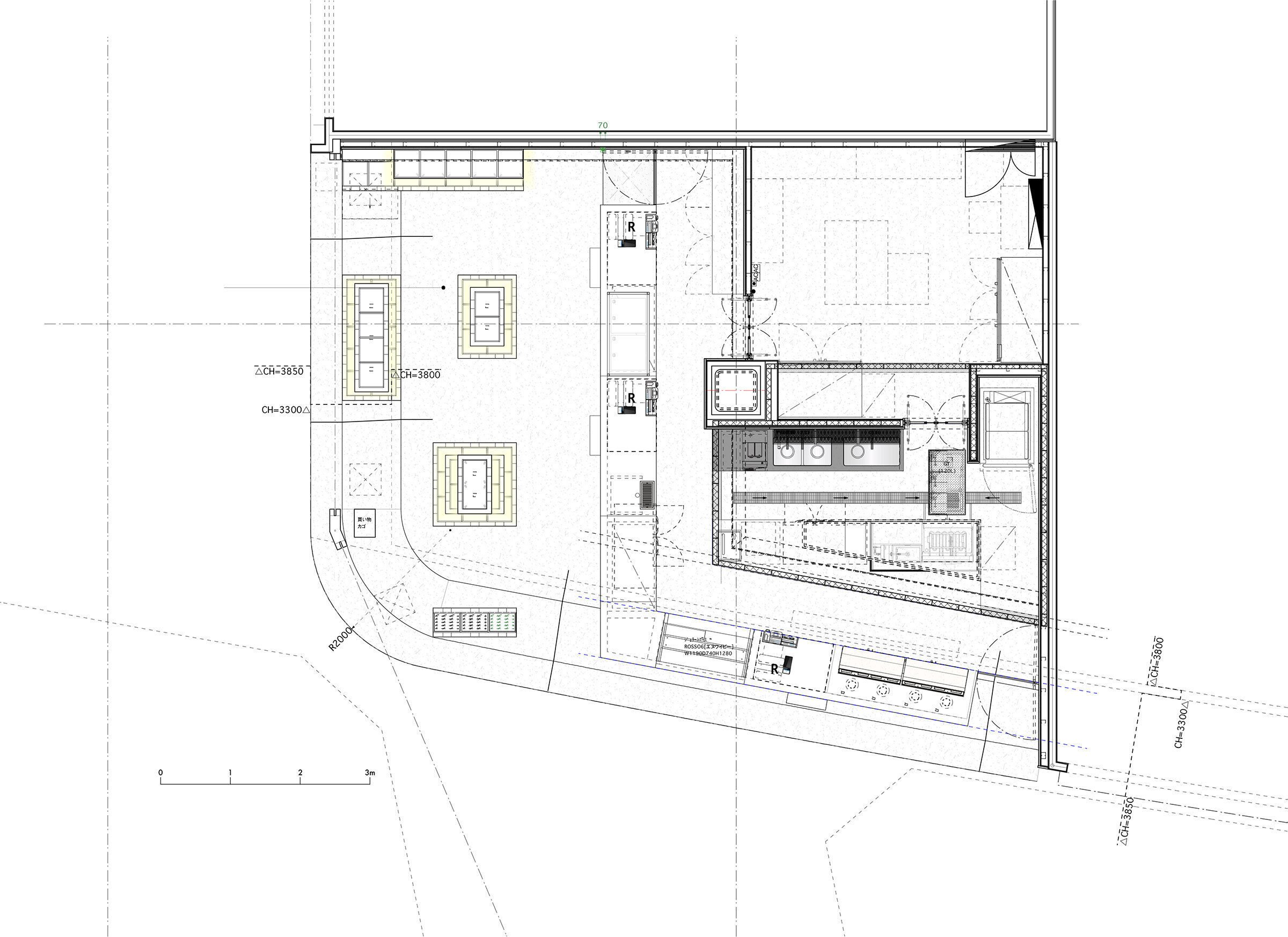 八幡屋礒五郎の主力商品である七味の分化で生まれるそれぞれの「素材=スパイス」の再構築による「横町カフェ」のメニュー「カレー」に代表されるMDの可能性。その延長線上にある「カレーパン」の日常性と汎用性をもって、より広くmassに向けた八幡屋礒五郎の魅力の発信する目的で「八幡屋礒五郎イオンモール須坂店」をデザインしました。