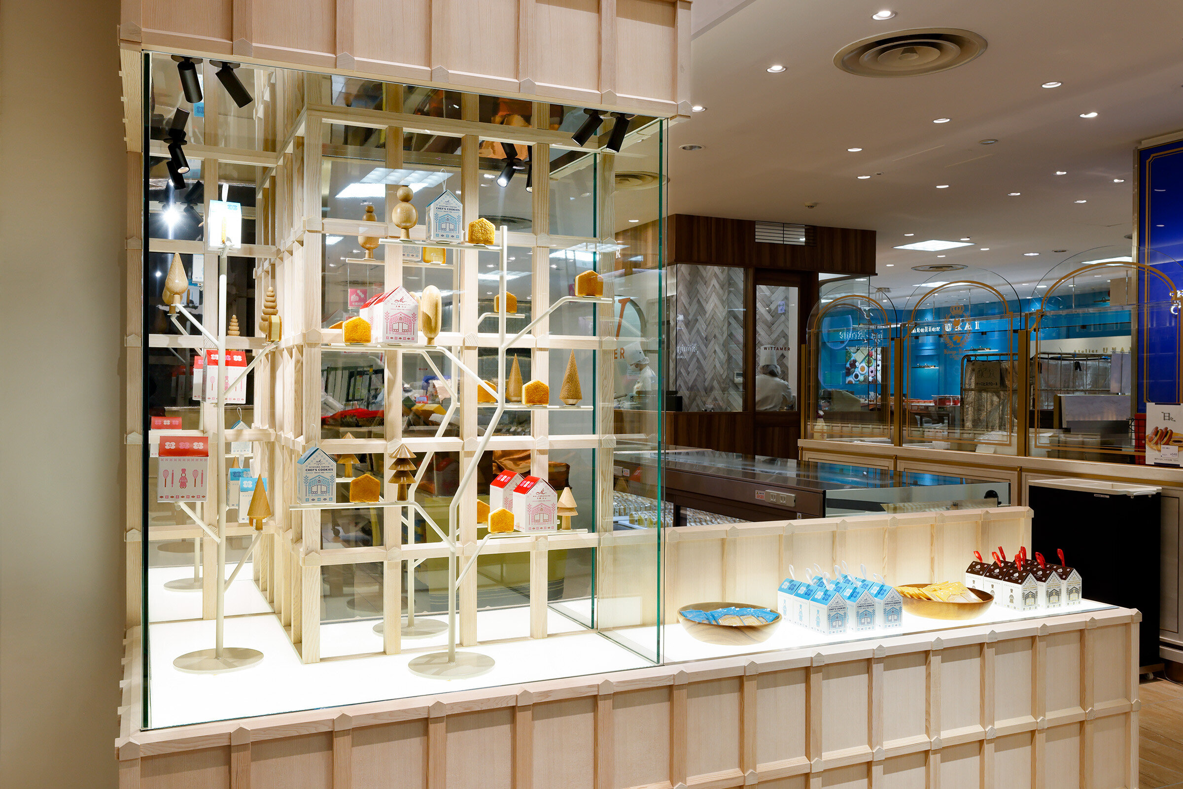 シェフクッキーを中心とする新しいマールブランシュのデザイン「焼き菓子を表現するフレンチオーク(楢の無垢材)」へのグラデーション」