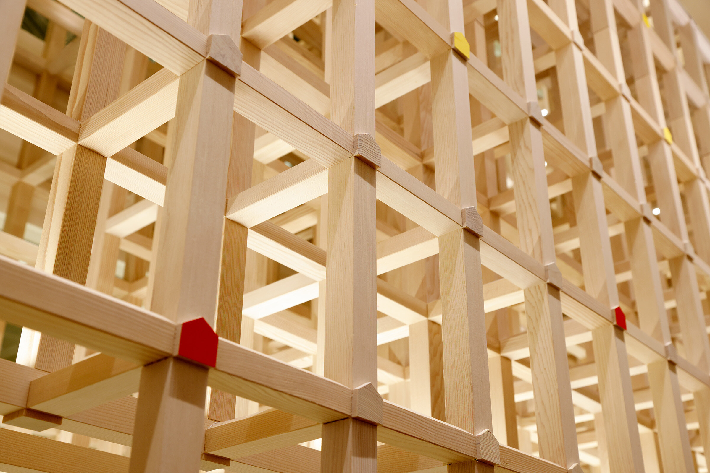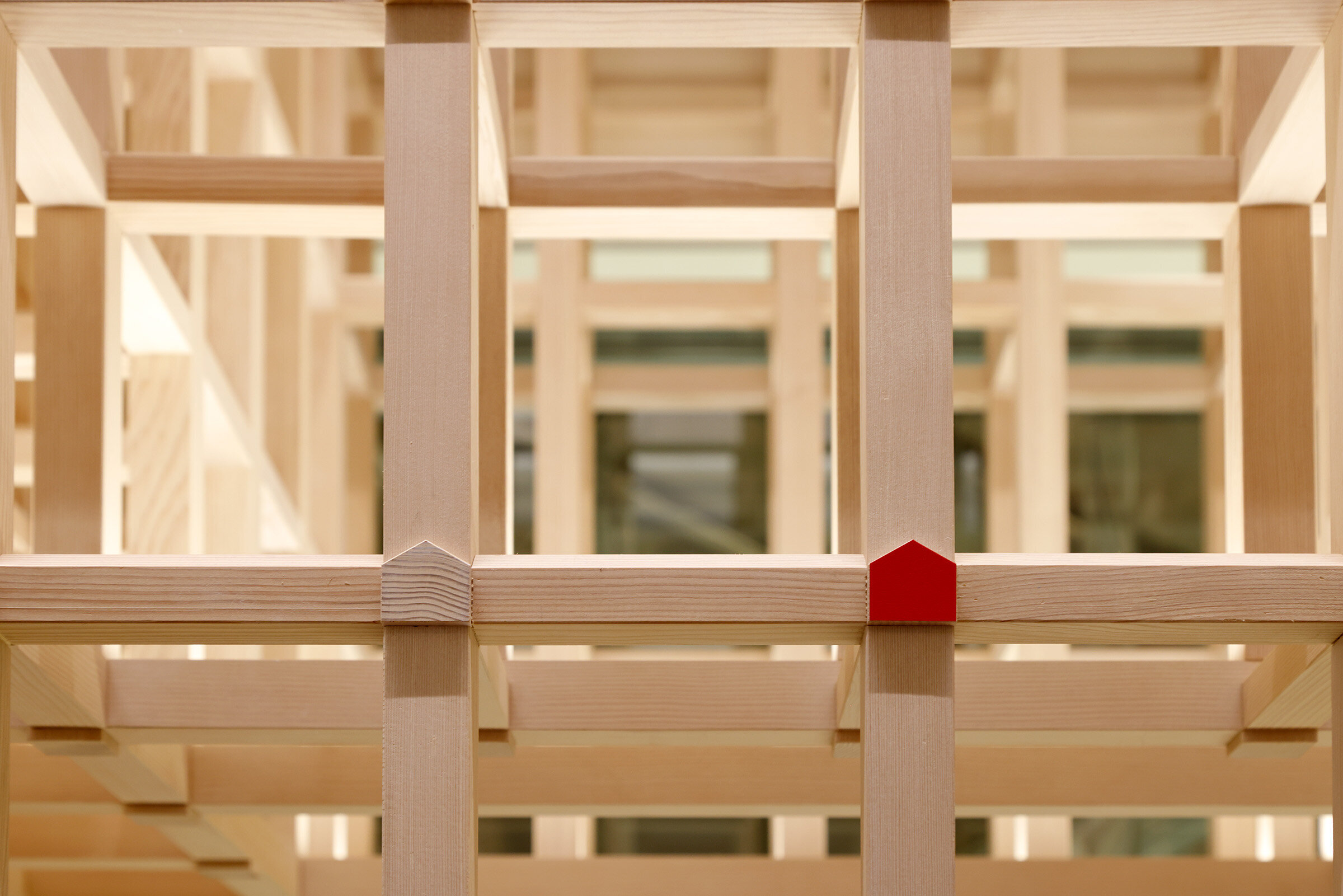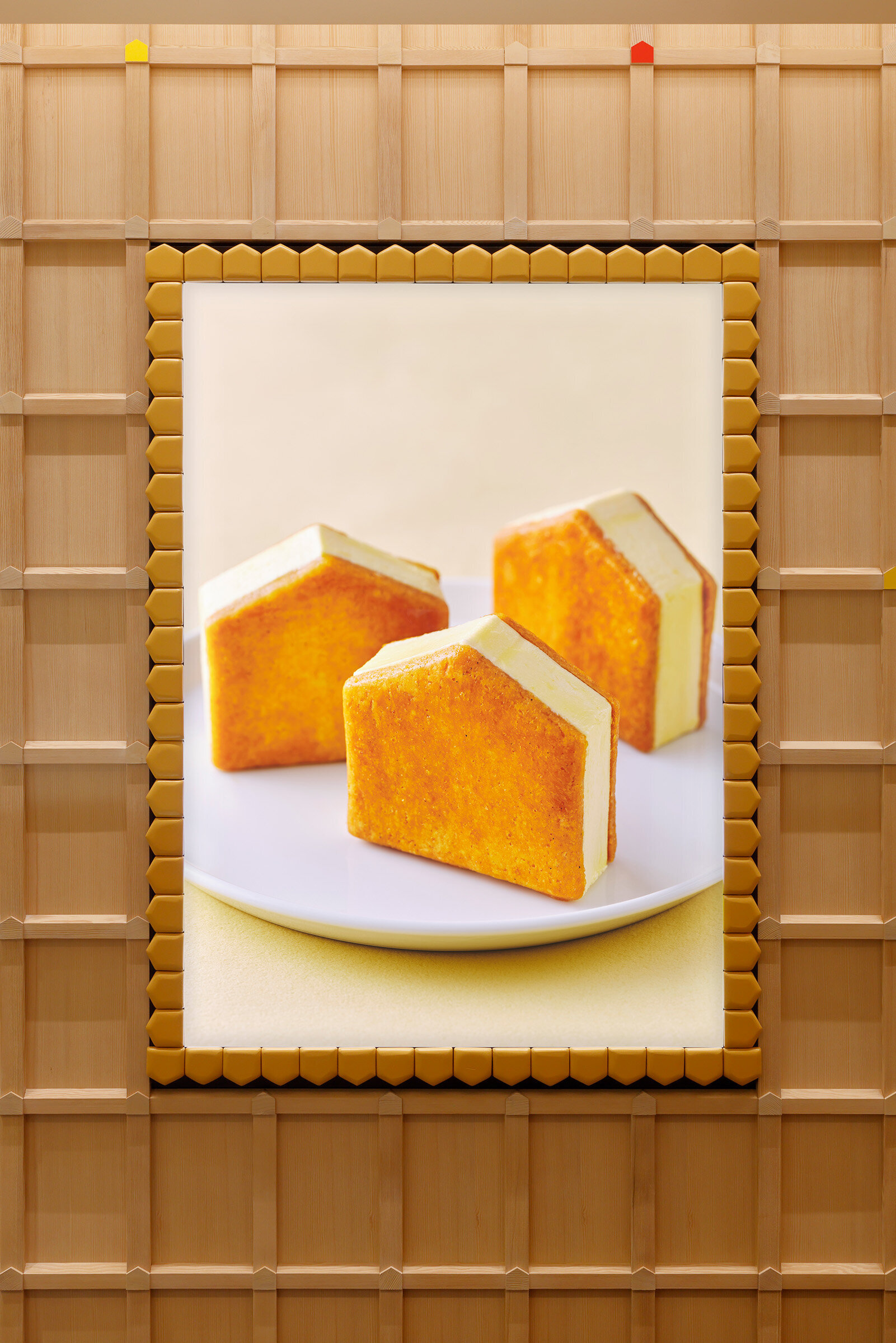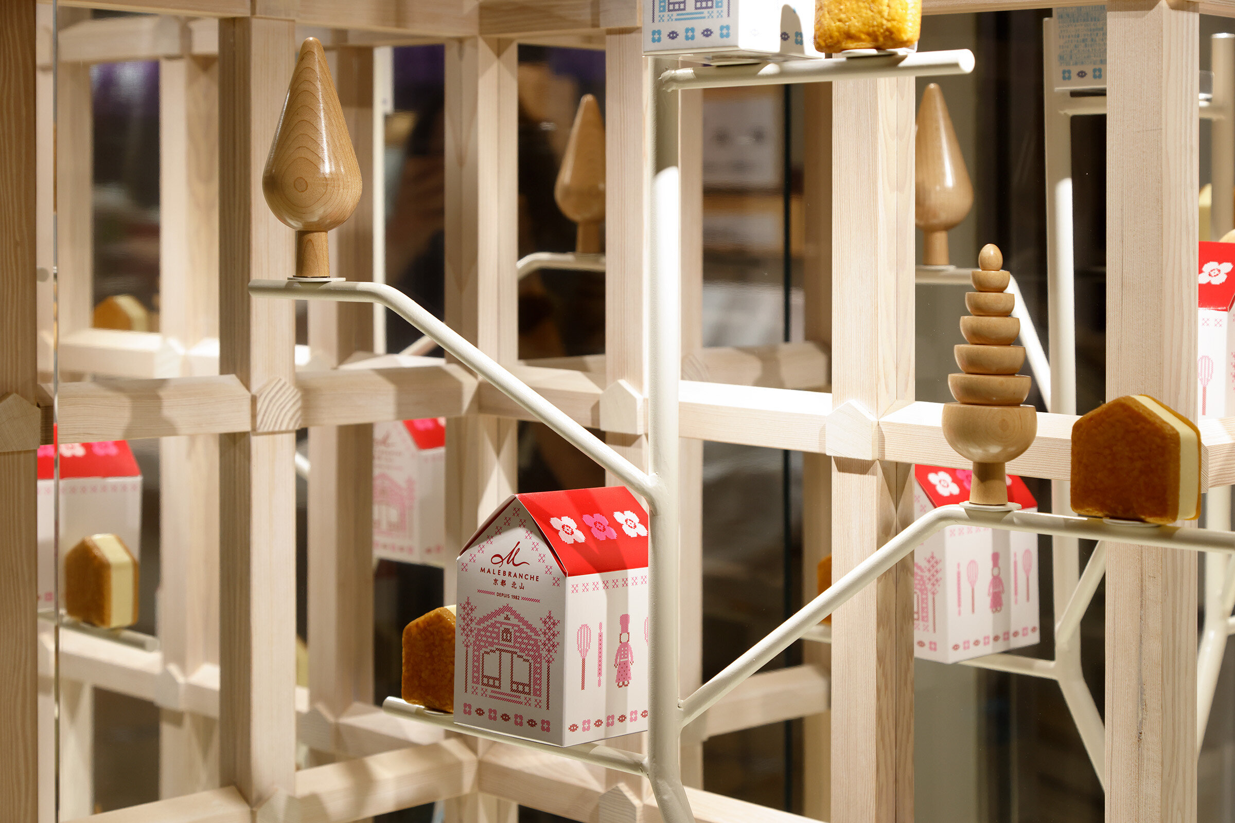 シェフクッキーのデザインの源である北山本店の象徴の「家型」の断面を持つ木軸組。