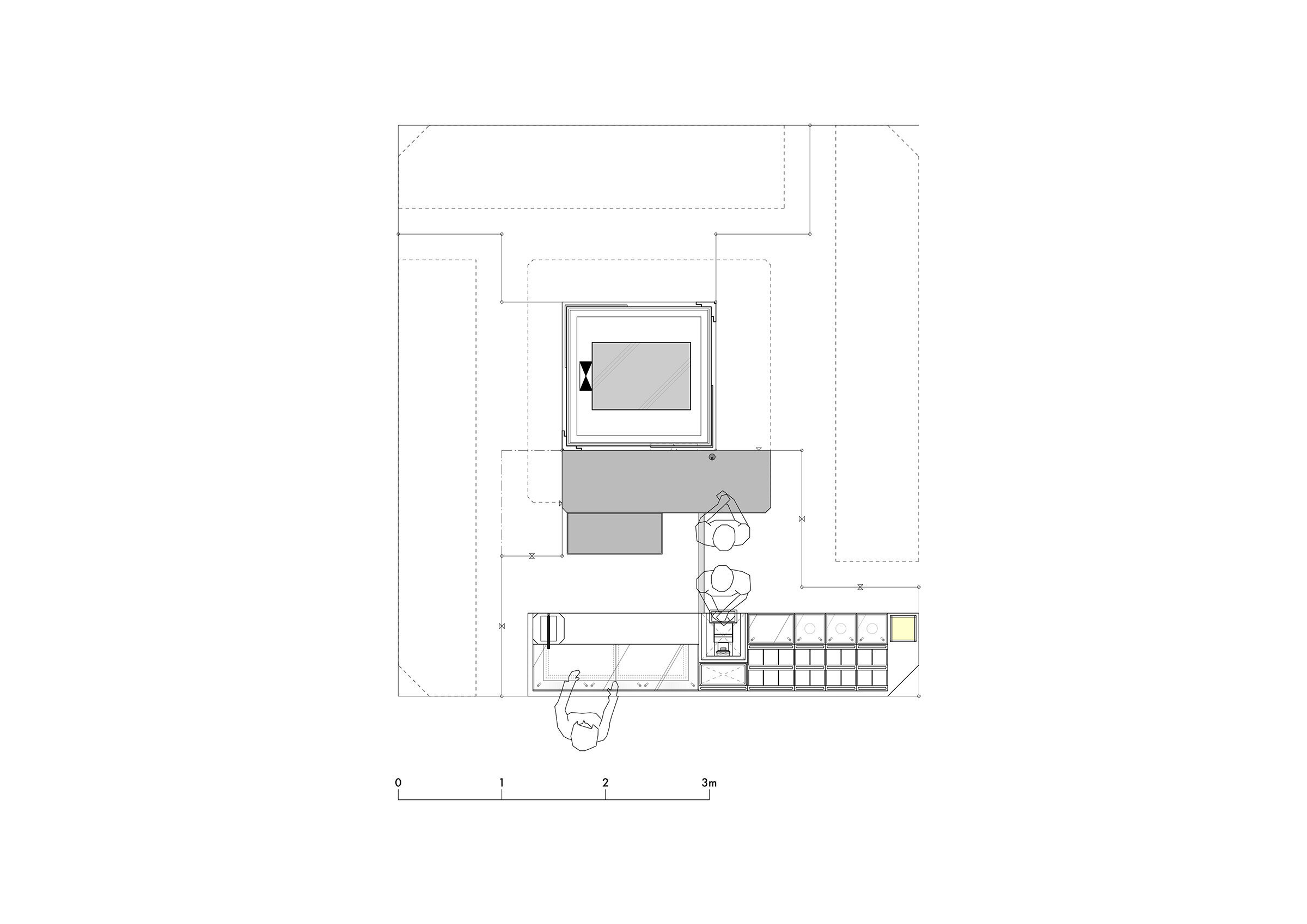 - 什器 本体 木工下地 桧柾目単板CL塗装仕上 / 天板・側板 t1.6mm ステンレス バイブレーション加工 CL塗装(銅板色)仕上 / 他